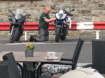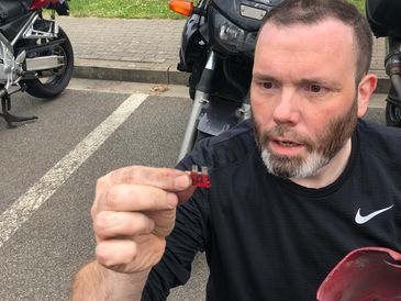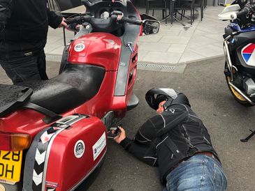After a mere 200 miles The Rocket declined to start and solutions were offered, including Chris' "Its a flat tyre mate".. Problem solved when Gregg suggested a look at the fuse box, once we could find the fuse box....
