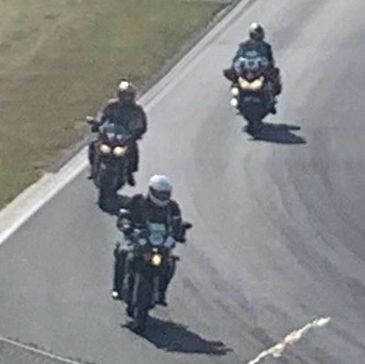 The Tedium leads the way with The Baron closing the back door. Phill is standing in for Pete, Lloyd, and Stu on his 2002 Faser 1000..